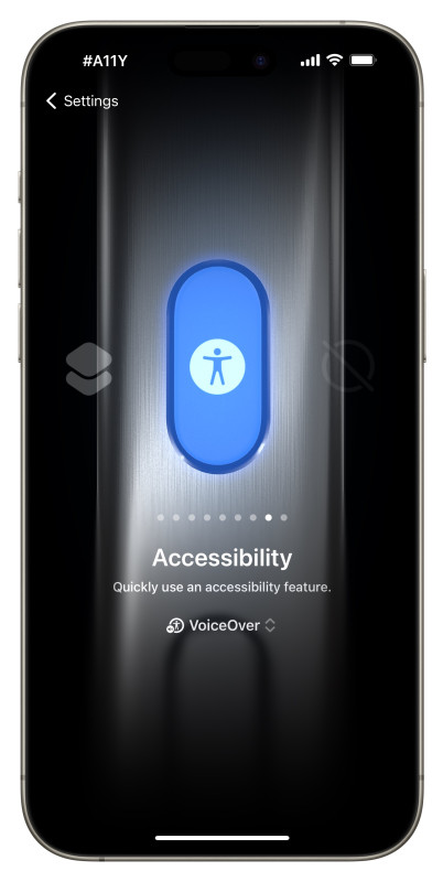 You can also put an accessibility feature, like VoiceOver, directly on the new iPhone 15 Pro Action Button. In Settings, go to Action Button and swipe almost all the way to the right to the “Accessibility” option and chose VoiceOver. Now, whenever you invoke the Action Button (press and hold briefly), VoiceOver is quickly turned on or off. See Apple’s documentation about the Action Button.